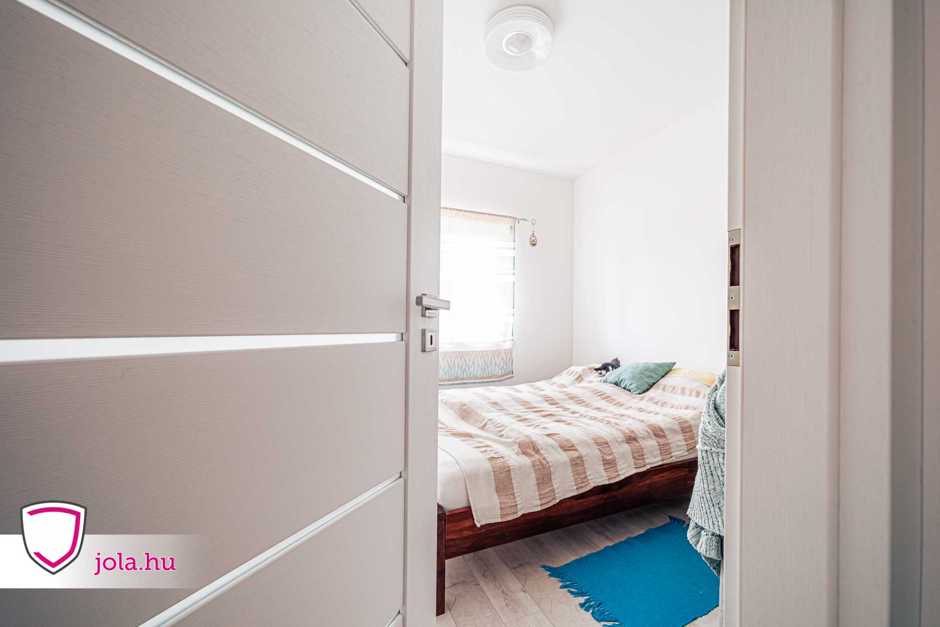 Első körben a beltéri munkákat mutatnánk be: a Dobogókő 1 típusú ajtaját választották, premium fehér kérek színben, a Bussare Pieza kilincsével „díszítve”.