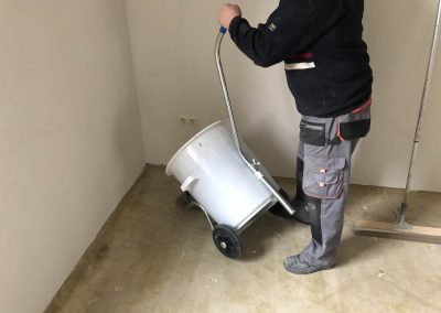 Aljzatkiegyenlítés esetén is fontos a pormentes aljzat biztosítása, ellenkező esetben az aljzatkiegyenlítő nem tud kapcsolatot biztosítani a fogadó aljzattal. Ebben az esetben a felválik a kiöntött, és megszáradt aljzatiegyenlítő. Ezt elkerülendő alapos porszívózás után egy alapozóval, henger, vagy ecset segítségével felhordjuk a kötőanyagot az aljzatra. Ez egy kötőhidat biztosít a pormentes aljzat és az aljzatkiegyenlítő között.