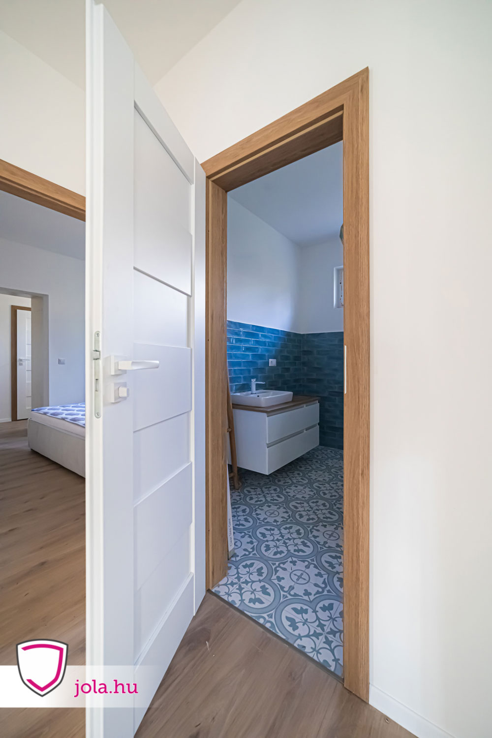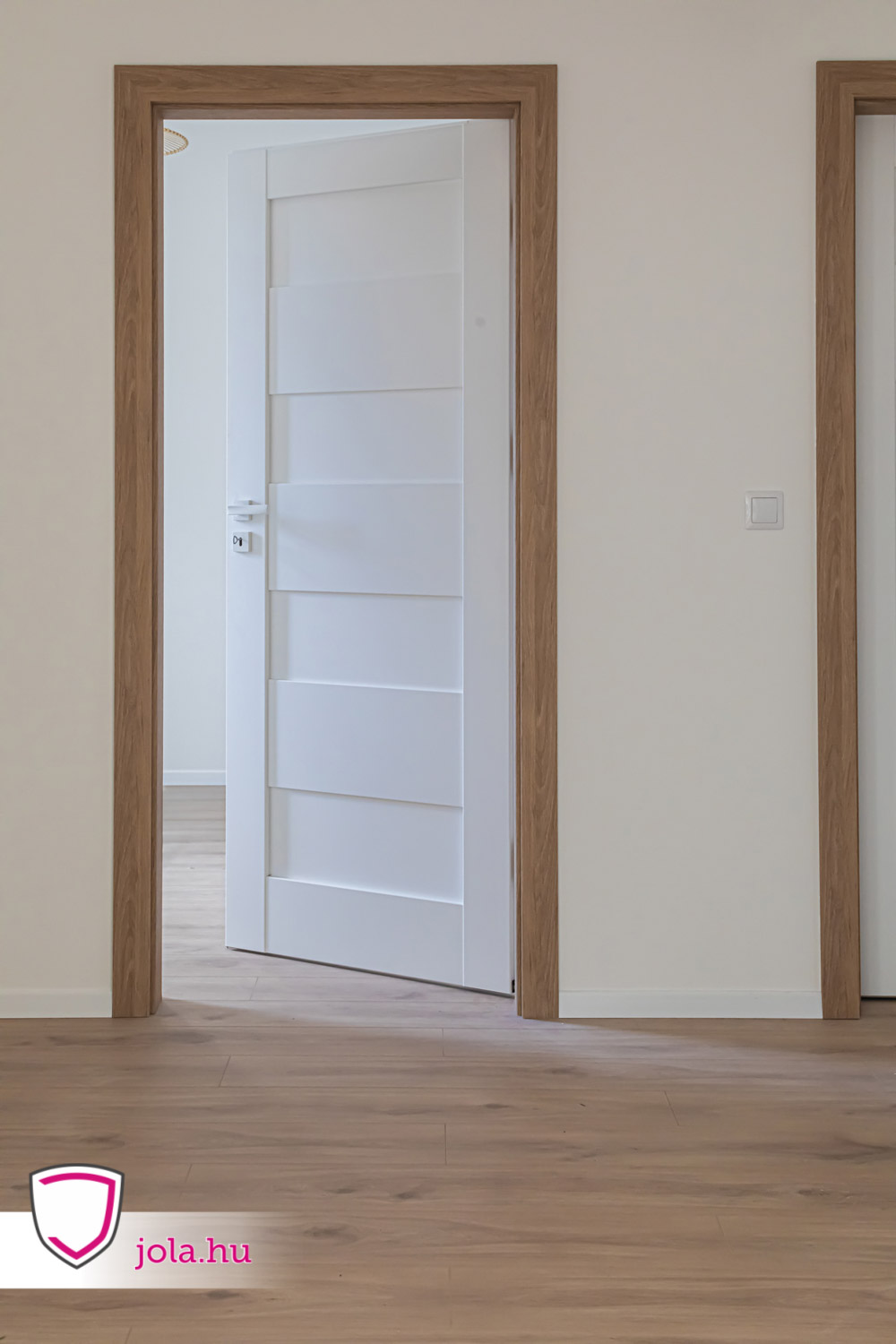 A CPL plusz Debecja 7 típusát ugyanis natúr tölgy prémium színben kérte ügyfelünk, míg az ajtólap fehér prémium, ahogyan a kilincsek és a zsanérok is.
