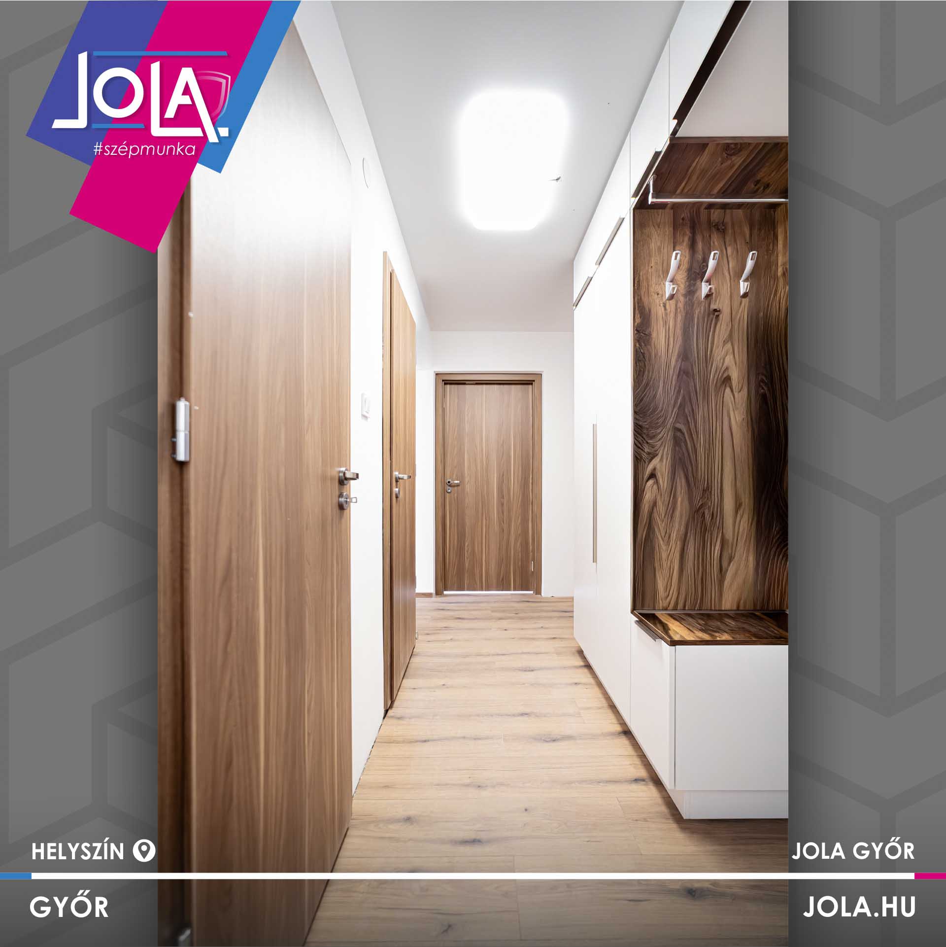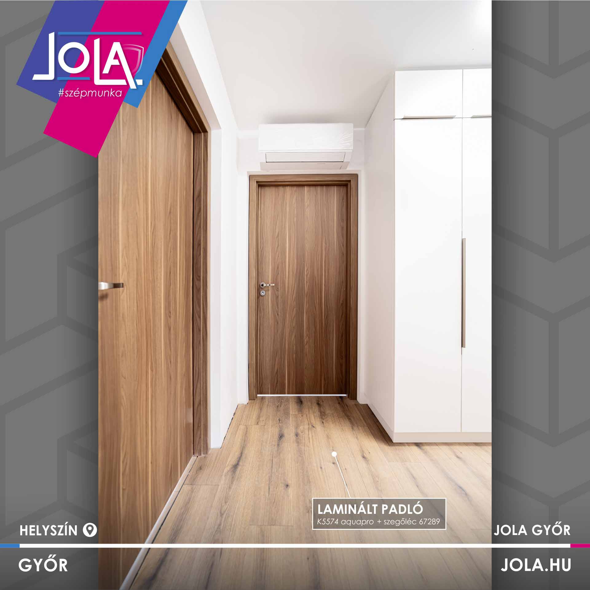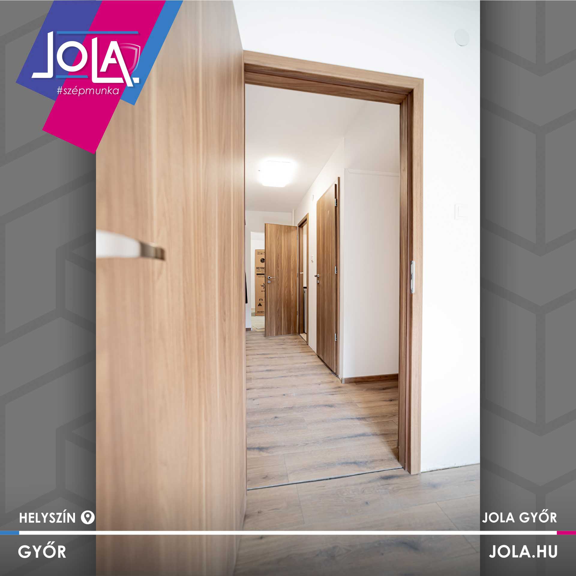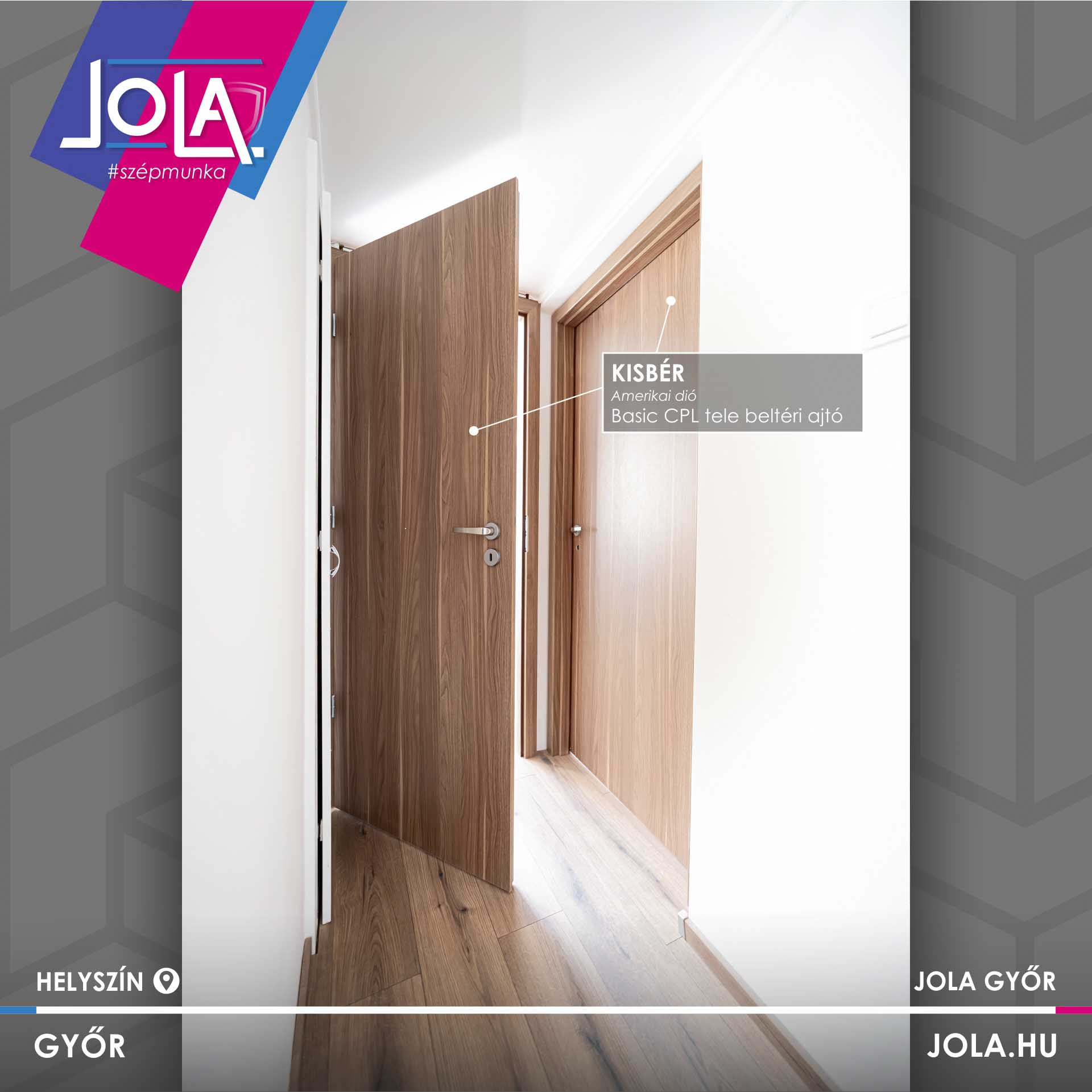 Padló ügyben a Kaindl „Tölgy Evoke Sunset” lett a kiválasztott, míg beltéri ajtóban a Basic CPL Kisbér modellje.